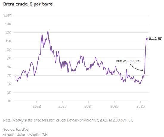 Pour l'instant, le baril surfe sur la vague des $100 le baril avec des pointes à $120. Chaque jour que Trump et Netanyahu persistent dans leur stratégie de démolition nous rapproche d'une crise économique majeure.