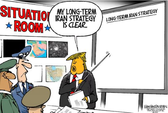 Il faut croiser les doigts pour qu'il n'utilise pas l'arme atomique sur l'Iran alors qu'il a envoyé ses plus grands bombardiers. Comme il est secondé par des fous furieux, cette option n'est plus à écarter.