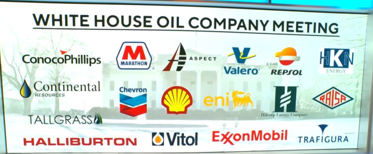 Plan large, dans une salle magnifique aux décors vêtus de blanc, le président américain a convié les compagnies pétrolières. Ces derniers ont été avertis avant les membres du Sénat de l’attaque sur Caracas. Comme à la Bourse, il y a des gens qui sont plus égaux que d'autres.