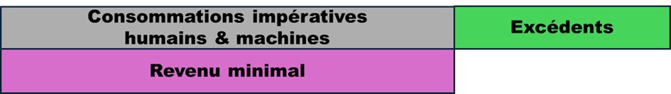 De même, les individus d’une société ont donc eux aussi des besoins minimaux impératifs afin de rester productifs et d’assurer le fonctionnement du système : logement, transports, nourriture, vêtements, éducation, soins de santé…